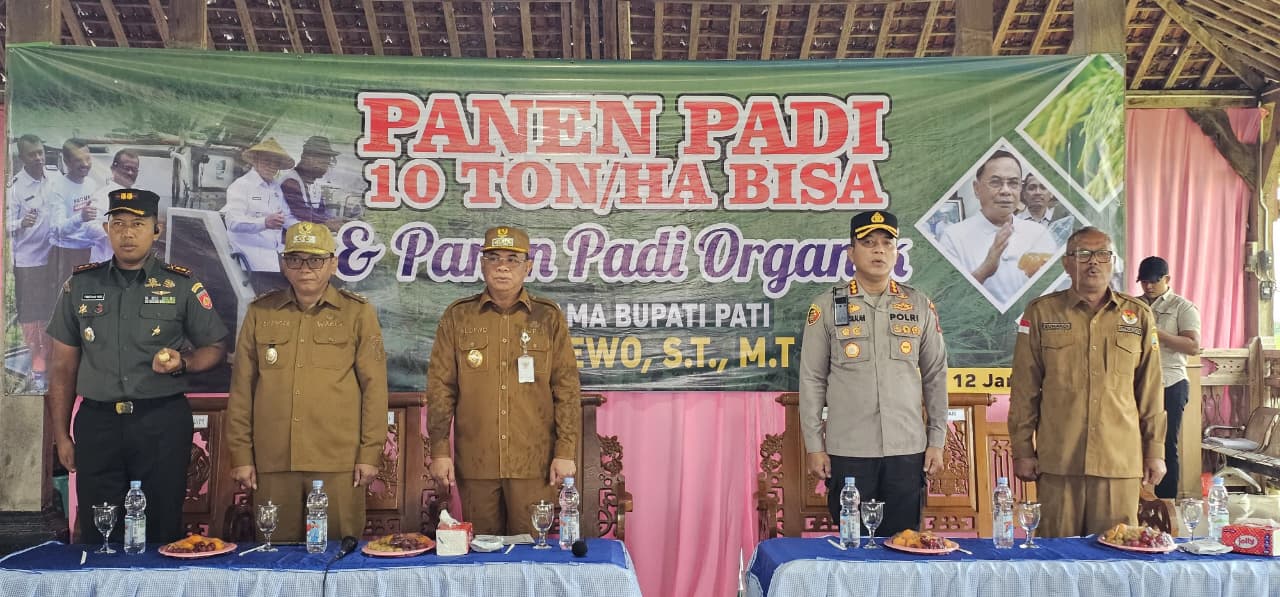 Pati – Pada hari Senin tanggal 12 Januari 2026, bertempat di Alun-alun Desa Baleadi Kecamatan Sukolilo Kabupaten Pati, Dandim 0718/Pati Letkol Arm Timotius Yogi .,M.Han bersama Bupati Pati melaksanakan panen raya 10 ton/Hektar TA. 2026. yang diikuti ± 200 orang.